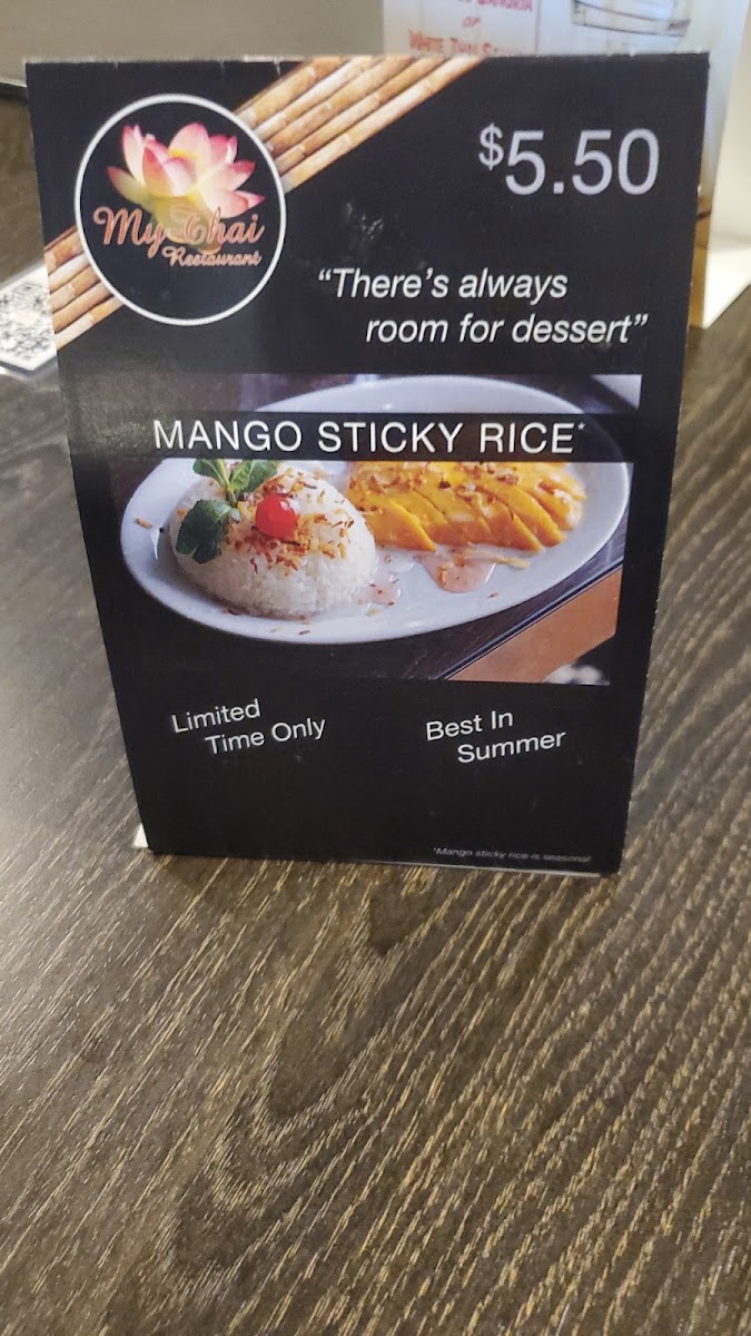 “ We tried sticky mango rice, padthai, and banana roll with ice cream. Sticky mango rice was authentic and it was out of the world. Highly recommended. Very polite customer service. Overall highly satisfied. ”